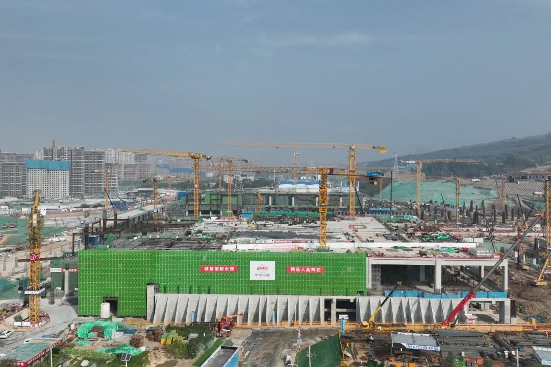 站房西1区、西3区承轨层已全部完成,西1区高架层已完成,西3区部分区域正在钢筋绑扎;侧1区、侧3区±0层已完成楼板浇筑,侧1区5.5米层梁钢筋绑扎及框架柱钢筋绑扎已完成;东1区正在进行桩基、承台及夹层施工,东3区正在进行桩基、承台施工。