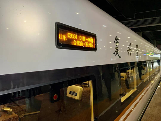 G9394次首发复兴号动车组列车于6月28日上午8:56缓缓驶出合肥南站,11时04分正点抵达杭州东站,标志着商合杭高铁合湖段正式开通运营!该线经湖州站至杭州高铁接轨,通达杭州,商合杭高铁实现全线贯通,河南、安徽、浙江三省实现高铁“无缝对接”。